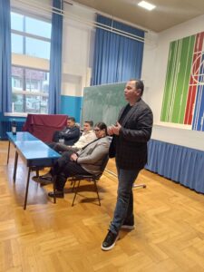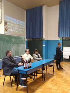 Učenicima su se obratili članovi Poslovnog kluba, Krunoslav Pavlinić- direktor i osnivač MDK GRAĐEVINAR d.o.o. Dubrovčan, Maja Buconjić Barišić – MODULLE d.o.o., osnivač i direktor,